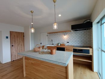 また、ダイニング側には作り付けのタイルカウンターを設置。